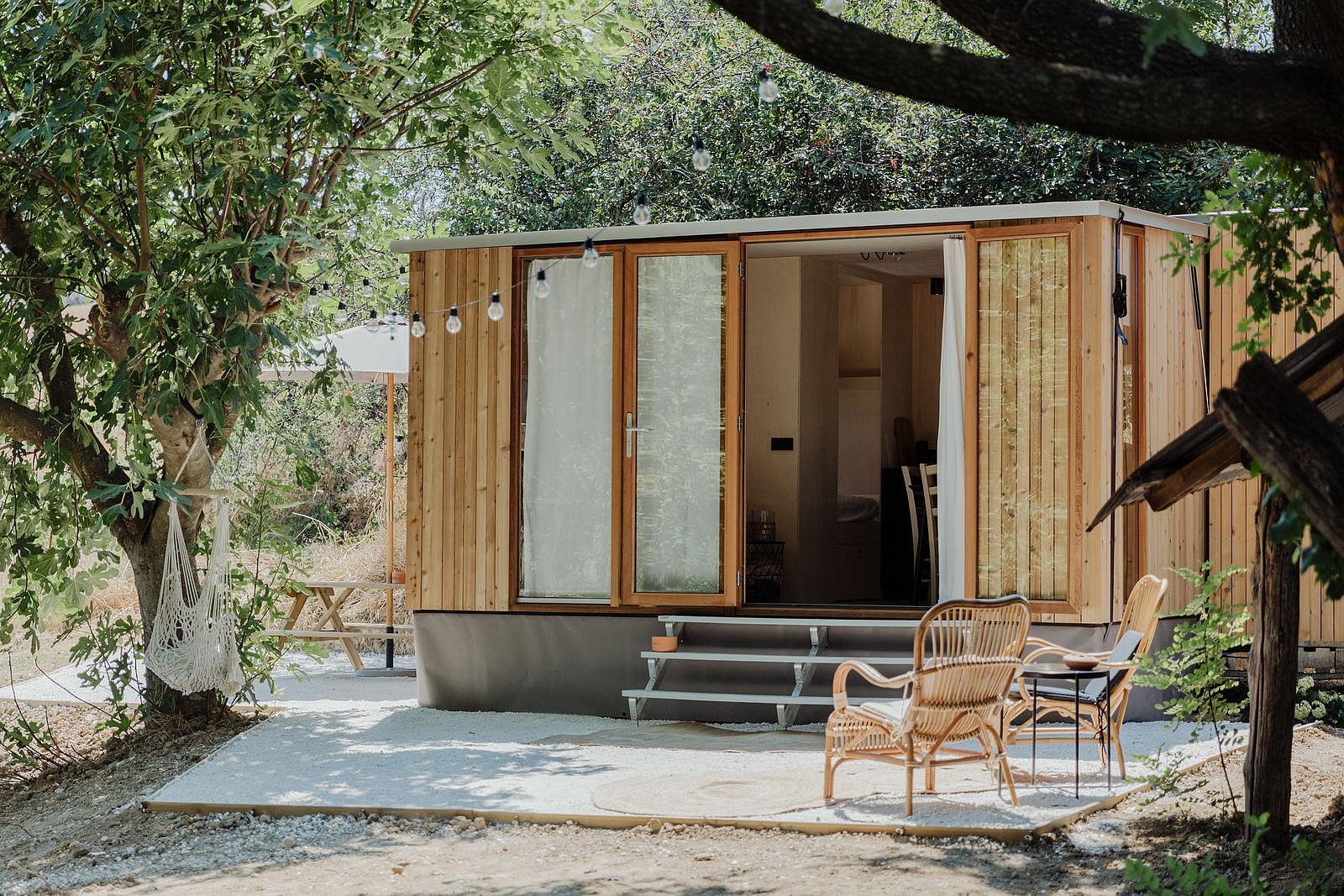 Het Klapkot beschikt over een comfortabele bedstee (vanaf 2 zijden benaderbaar voor twee personen en een stapelbed. Totaal dus geschikt voor vier personen. Geen smalle trappetjes of aparte slaapverdiepingen, maar alles gelijkvloers. De uitstraling is warm en modern, met houtafwerking, ronde hoeken en een vinyl vloer in visgraatmotief. Het Klapkot wordt compleet opgeleverd, inclusief vaste verlichting, rolgordijnen en gordijnen, zodat het direct klaar is voor gebruik.