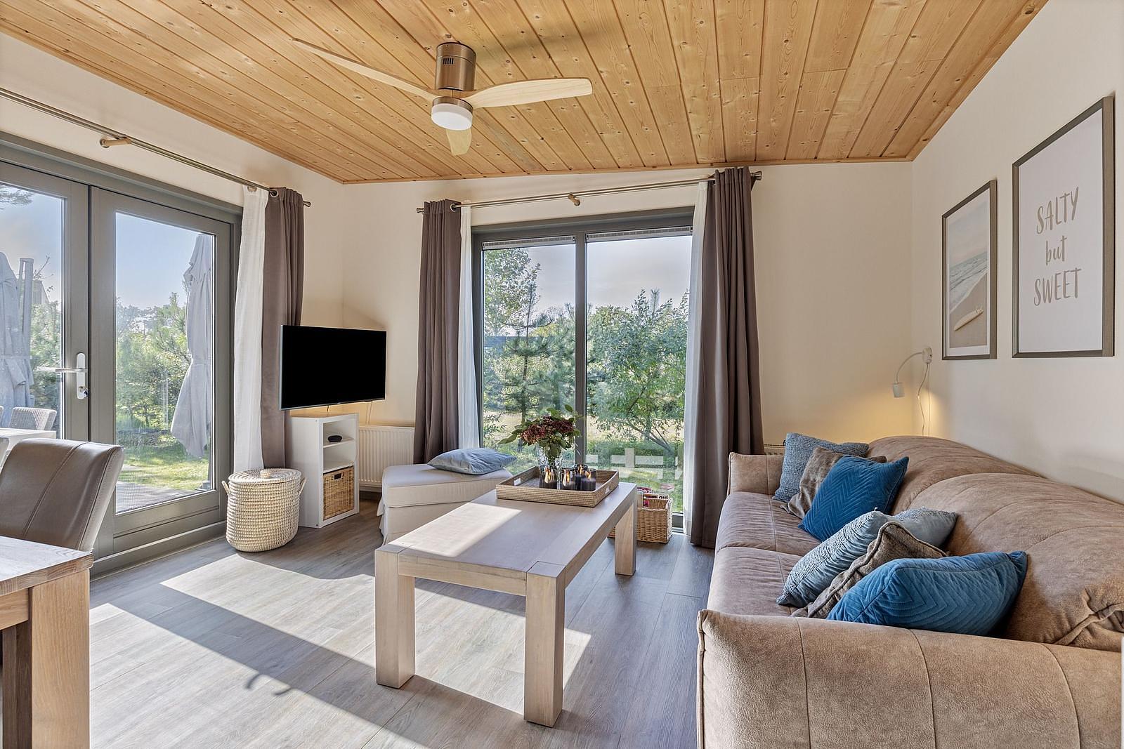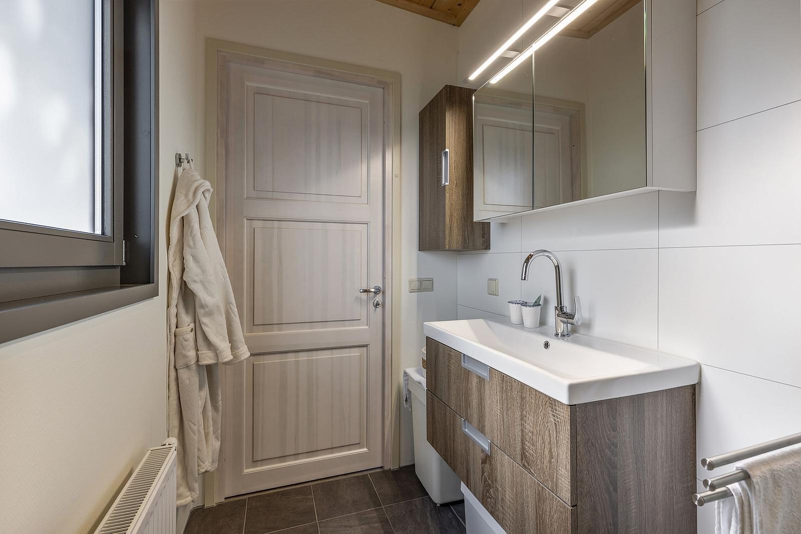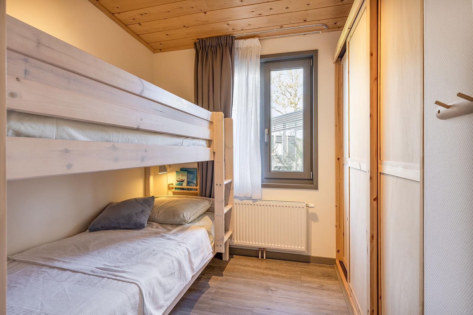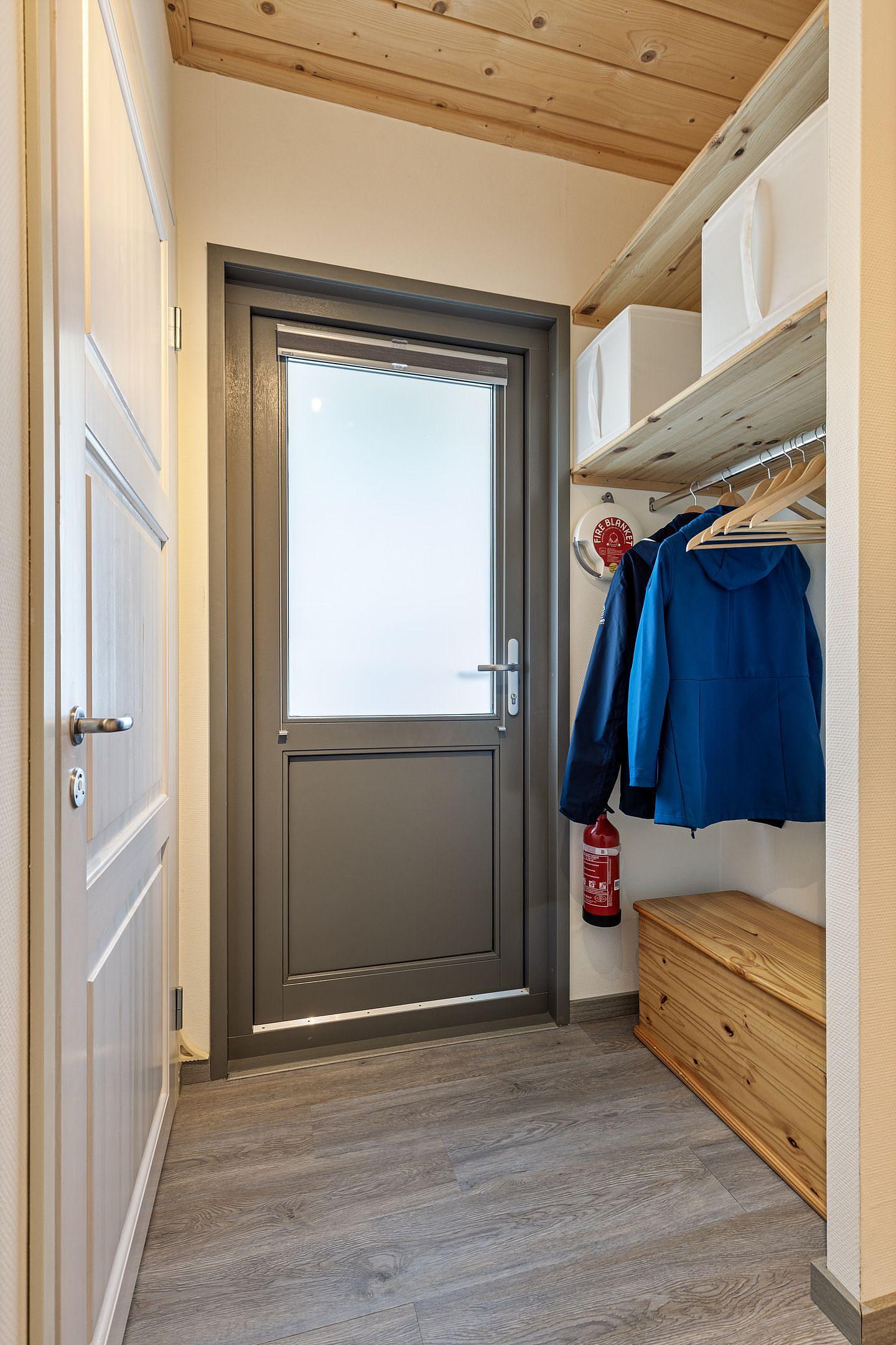 Die geräumige, helle Cabin ist mit Holzfenstern, Doppelverglasung und guter Isolierung ausgestattet. Die Unterkunft verfügt über eine schöne offene Küche, die mit allen Annehmlichkeiten ausgestattet ist. Es gibt zwei Schlafzimmer, eines mit einem Doppelbett und eines mit einem Etagenbett. Die Schlafzimmer bieten viel Stauraum. Das Badezimmer verfügt über eine Dusche mit Glasschiebewand und ein breites Waschbecken. Die Toilette befindet sich in einem separaten Raum.