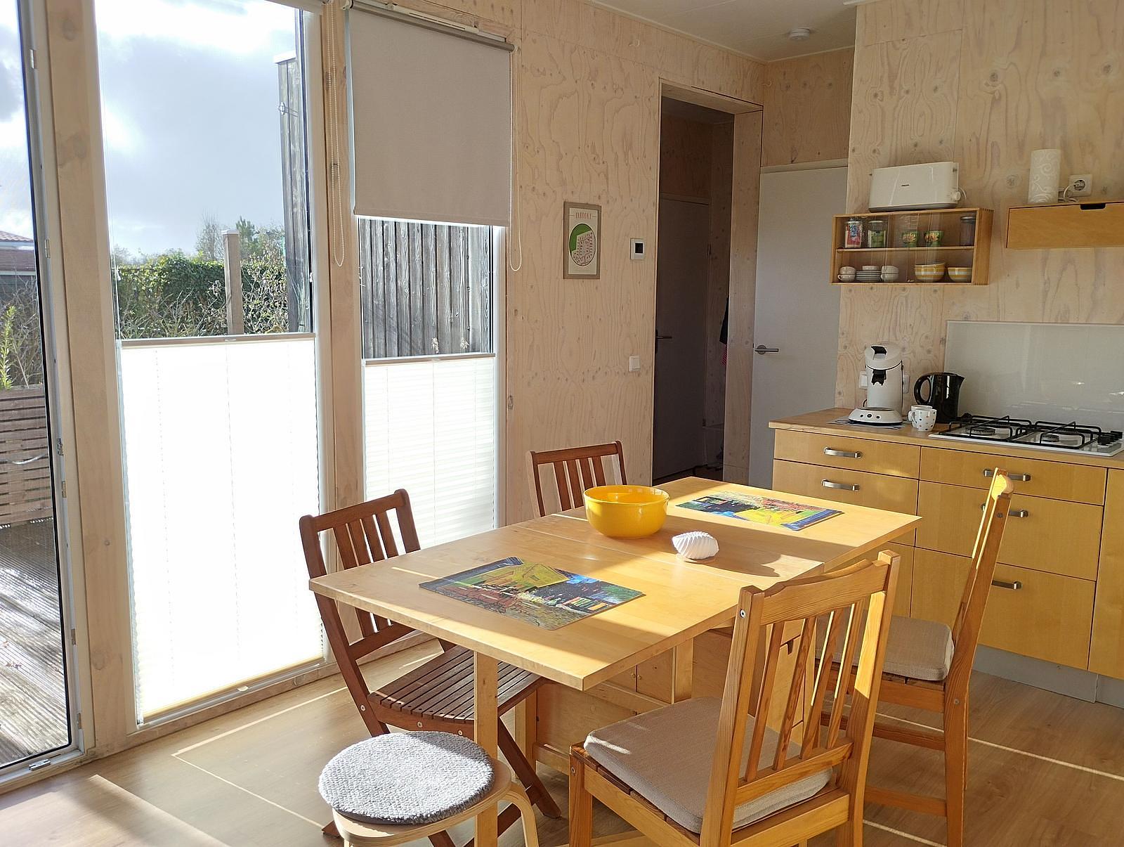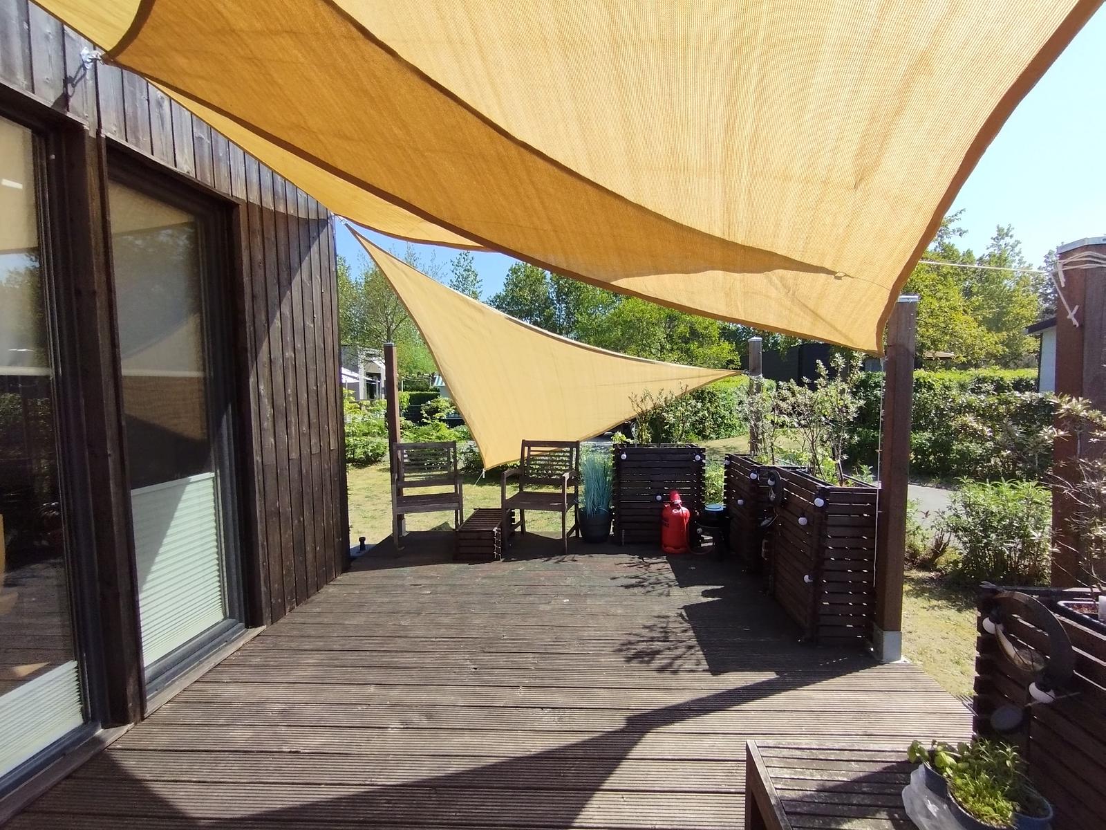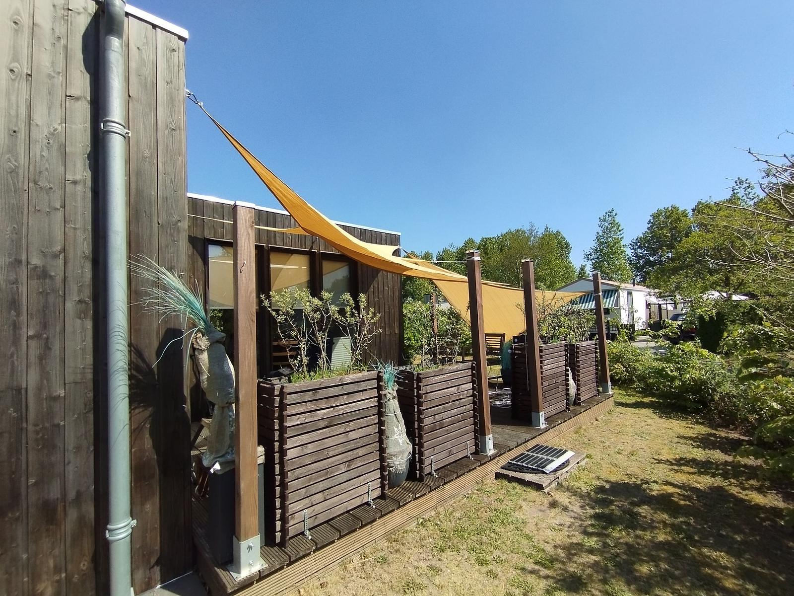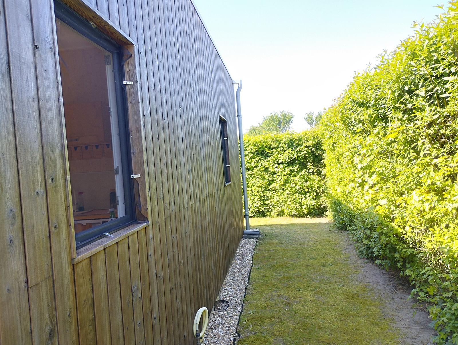 Das Grundstück Lepelaar 40 umfasst 218 m² und ist auf zwei Seiten von einer hohen Hecke umgeben. Zur Wegseite hin sorgen Sträucher für zusätzliche Privatsphäre und Ruhe. Die Cabin ist mit einer Muschelumrandung zum Rasen hin eingefasst. Das Leben im Freien genießen Sie auf der sonnigen, ca. 20 m² großen Holzterrasse sowie auf der umliegenden Rasenfläche.
