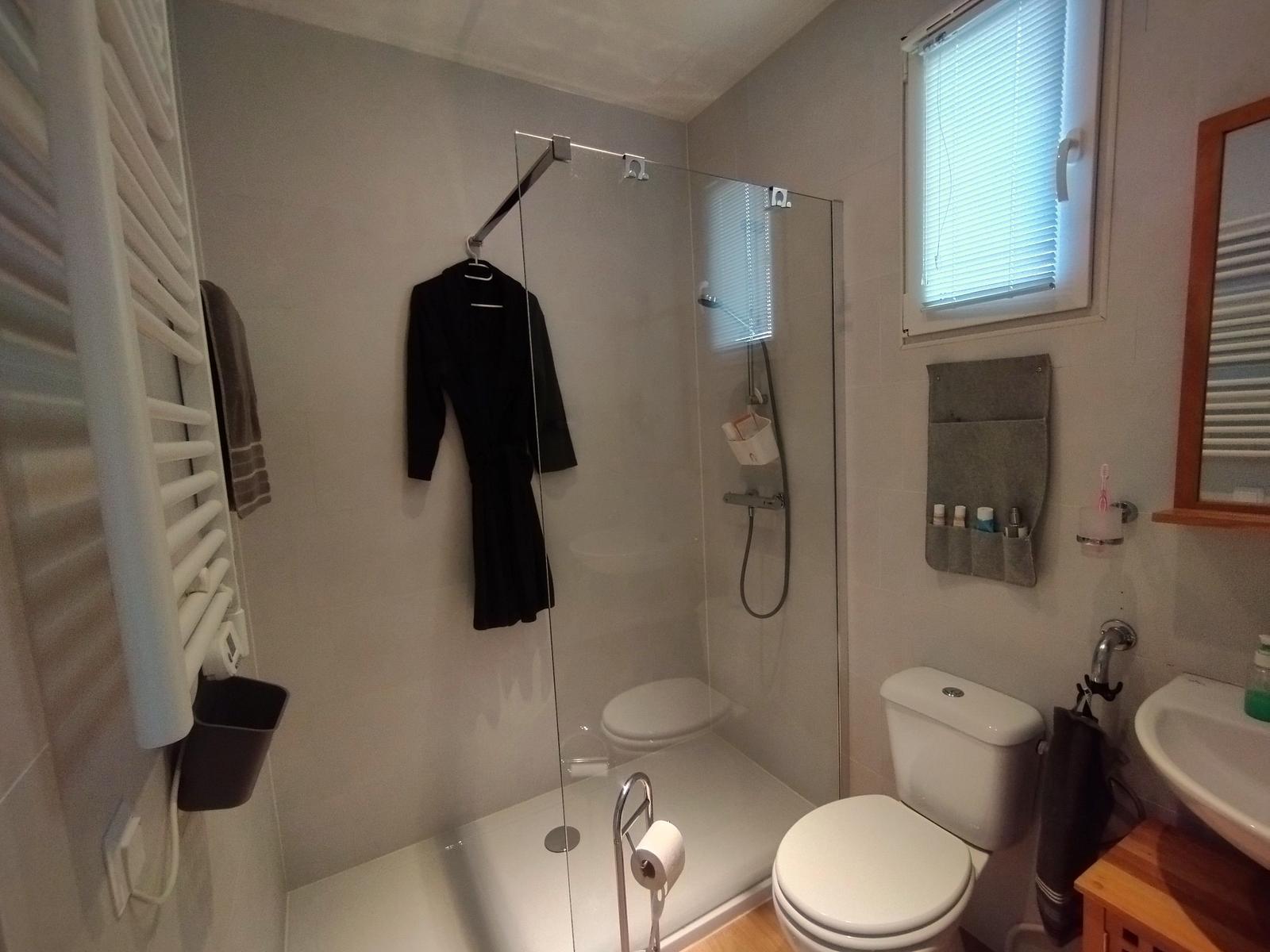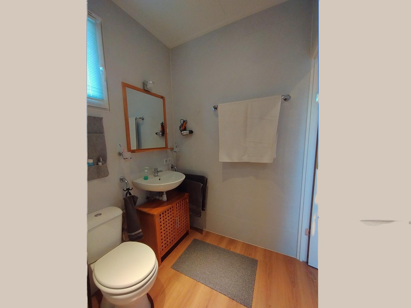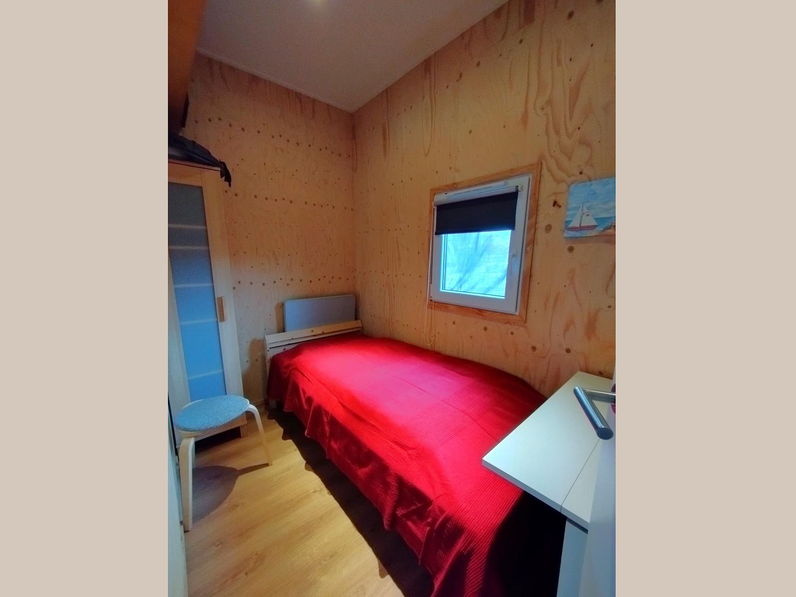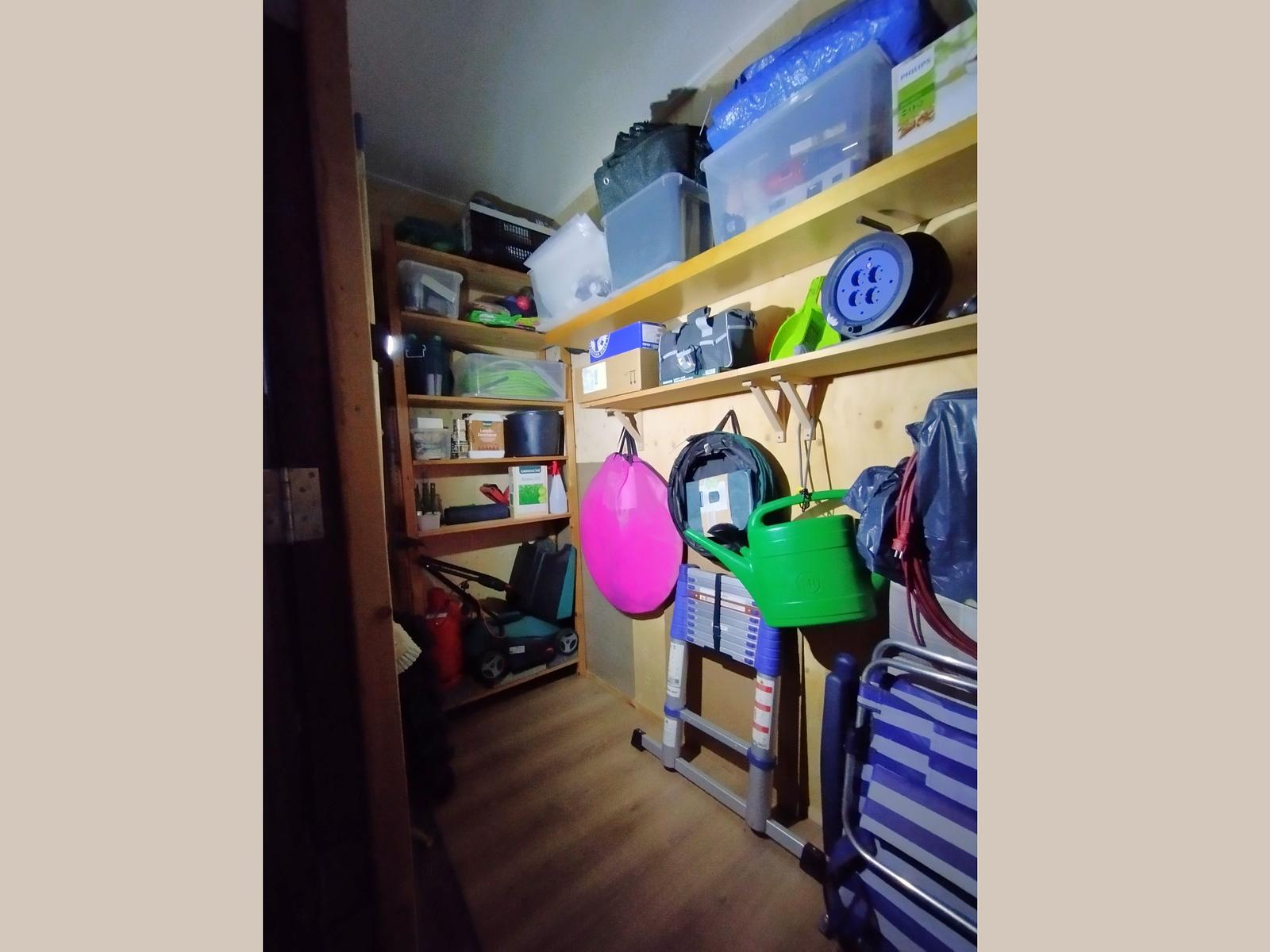 Angrenzend befinden sich ein gemütlicher Sitz- und Essbereich sowie zwei praktische Schränke. Das großzügige Schlafzimmer ist mit Schränken und Ablageflächen ausgestattet und verfügt über zwei Einzelbetten, die zu einem komfortablen Doppelbett zusammengestellt sind. Im kleinen Schlafzimmer steht derzeit ein Einzelbett; alternativ ist auch die Aufstellung eines Etagenbetts möglich. Das moderne Badezimmer ist mit einer großen, ebenerdigen Dusche sowie einem Handtuchheizkörper ausgestattet. Die gesamte Cabin bietet mit einer Innenhöhe von 2,65 m ein besonders angenehmes Raumgefühl. Ein von außen zugänglicher, integrierter Abstellraum bietet Platz für zwei Fahrräder, Gartengeräte und weitere Utensilien.