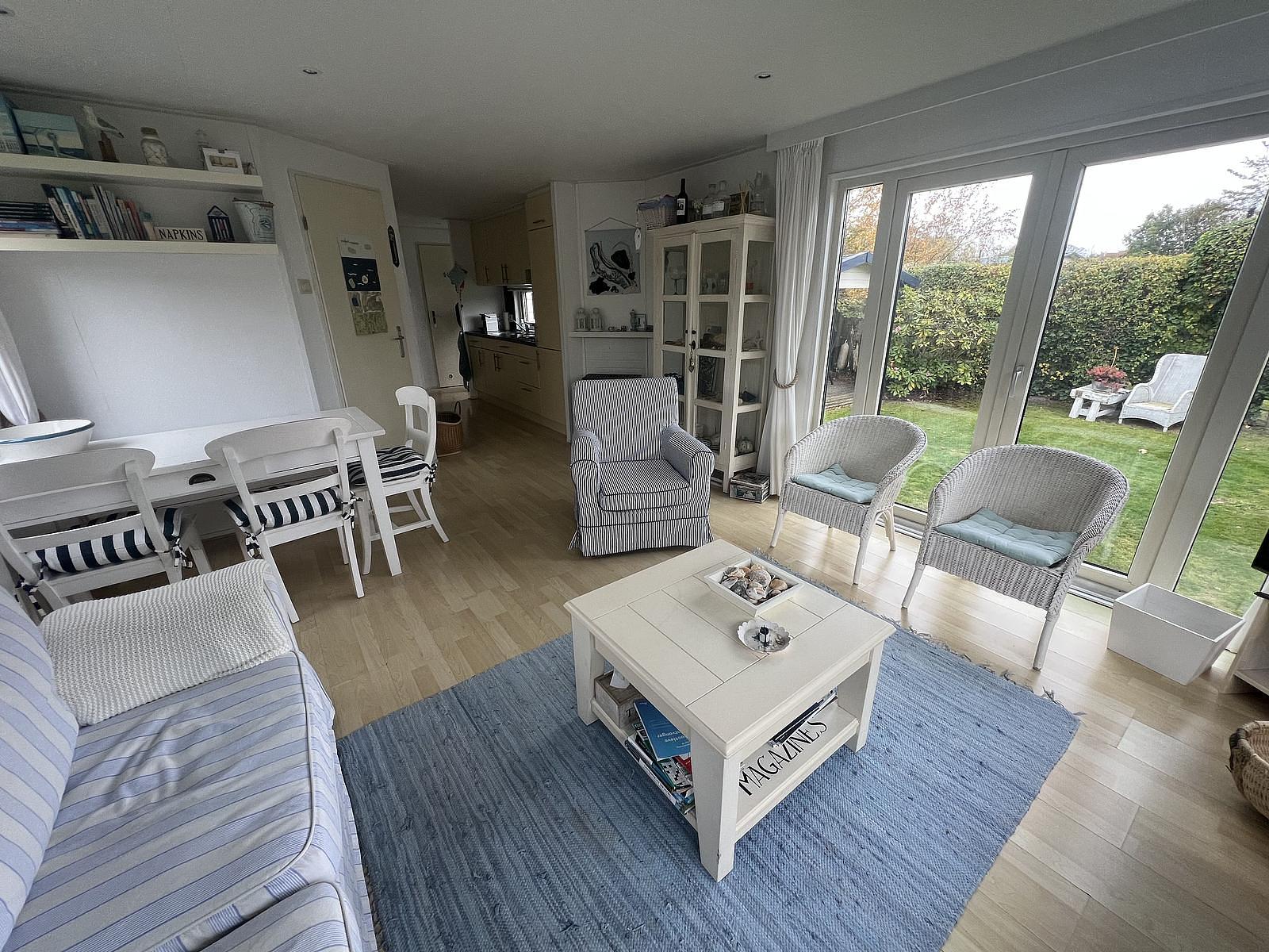 Im großzügigen Garten befindet sich ein Schuppen mit einem geräumigen Kühl-/Gefrierschrank. Genießen Sie das Leben im Freien auf der Holzterrasse, sodass Sie das ganze Jahr über die frische Luft genießen können. Die grüne, ruhige Umgebung rund um das Chalet bietet viel Privatsphäre und einen wunderbaren Ort zum Entspannen.