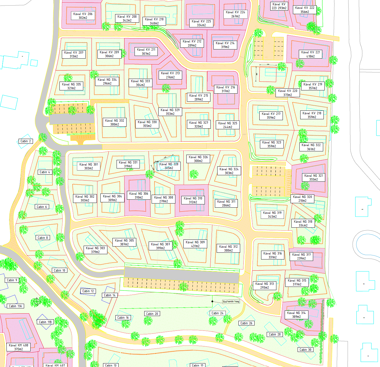 Insgesamt handelt es sich um etwa 16 Grundstücke unterschiedlicher Größe (m²). Auf jedem Grundstück kann ein eigenes Cabin-Design realisiert werden, das vollständig den Richtlinien und dem Erscheinungsbild des Parks entspricht.